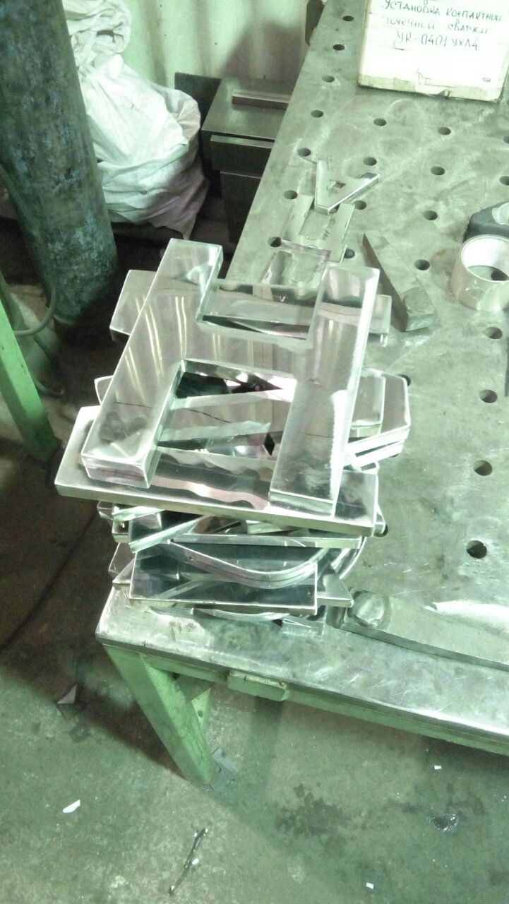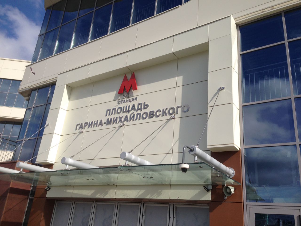 Объемные буквы из нержавеющей стали для входа в станцию Метро "Площадь Гарина-Михайловского" Новосибирск.